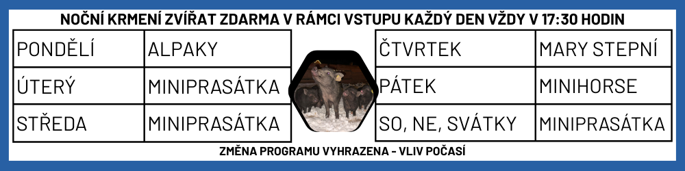 Zveme vás na speciální NOČNÍ KRMENÍ každý den od 17:30 hodin.