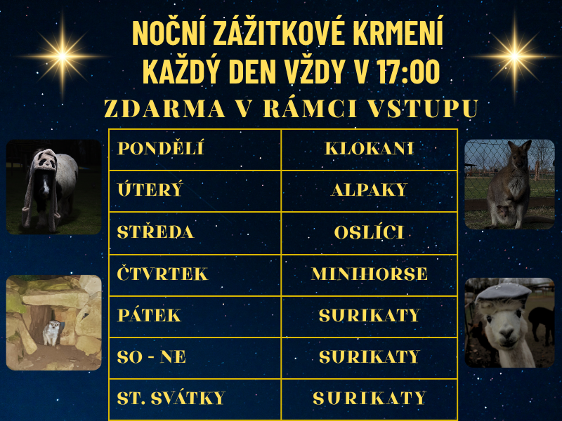 Náš tip: Buďte u nás v 16.30, stihnete komentované krmení a zároveň uvidíte, jak se celý ZOOPARK postupně rozzáří tisíci světýlky!