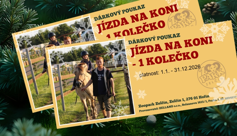 "Hledáte originální dárek? Darujte poukaz na jízdu na koni v ZOOPARKU Zelčín a dopřejte svým blízkým možnost poznat krásu koní zblízka. Naši zkušení instruktoři se postarají o bezpečný a příjemný zážitek pro každého."